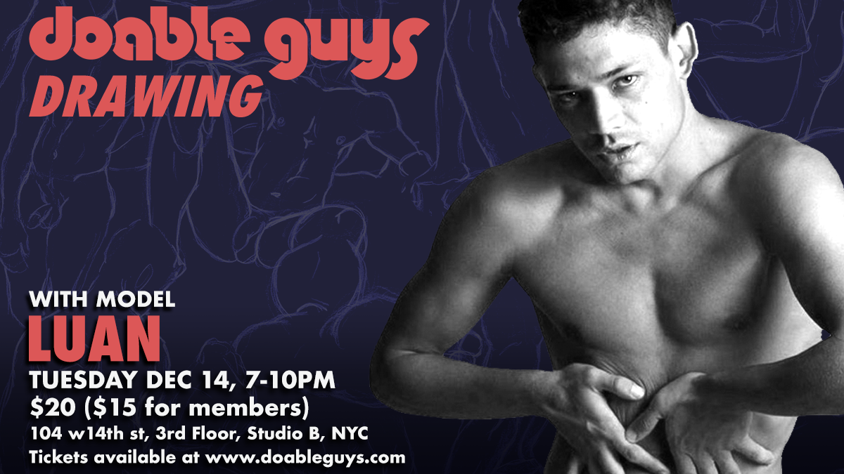 He’s posed for us virtually, but here is your chance to draw Luan IN PERSON! The session will run from 7-10pm.